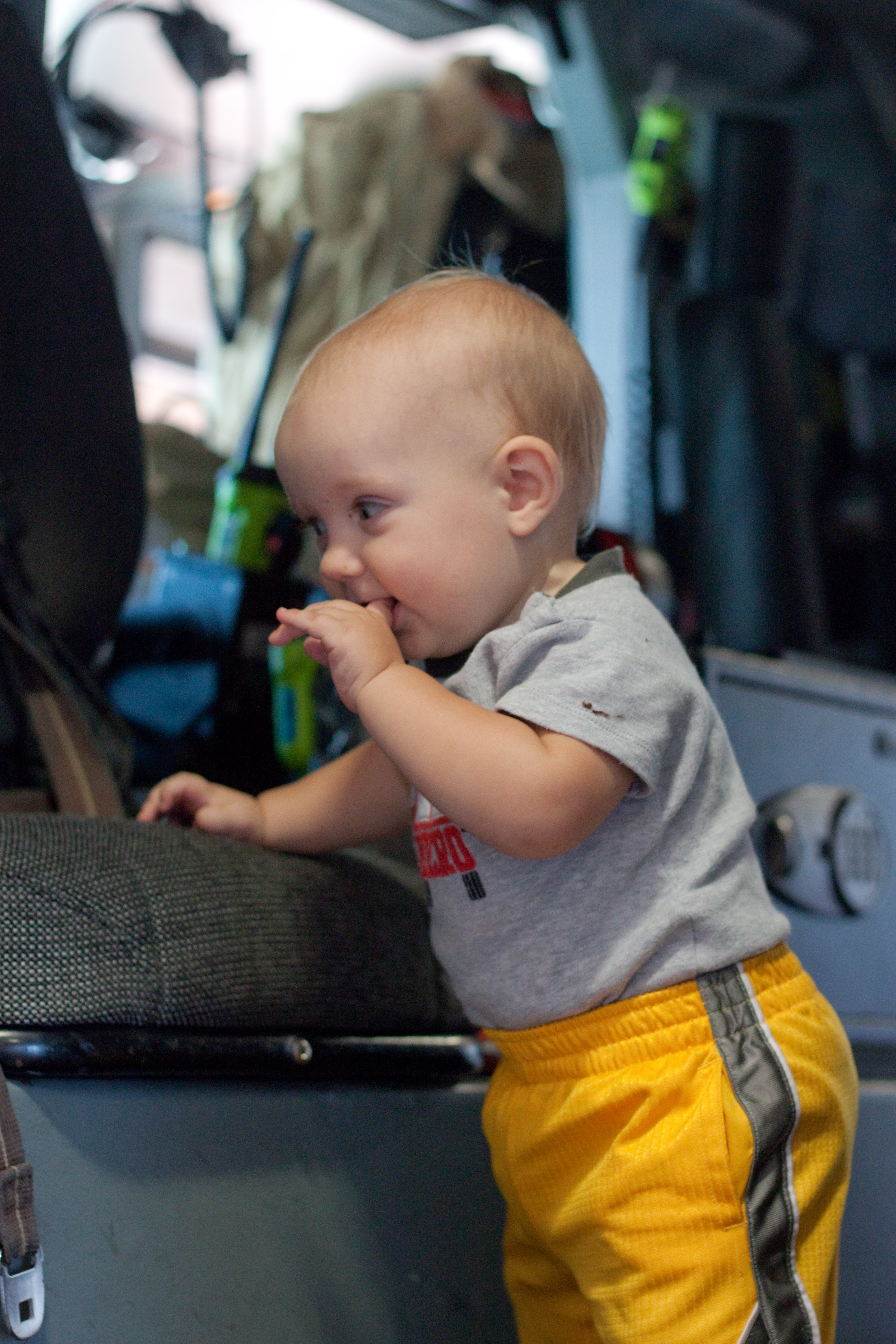 True to my aforementioned logistically-challenged self, I scheduled the tour at a time that overlapped with Limerick’s morning nap (in my excuse, I had to schedule it a few weeks in advance and he was transitioning from 3 naps to 2 at the time). He probably would have enjoyed it a lot more if he hadn’t been so tired; he spent most of the hour-long tour sitting in his stroller just watching everyone else. He did get to check out the second-row seating in the ladder truck though: