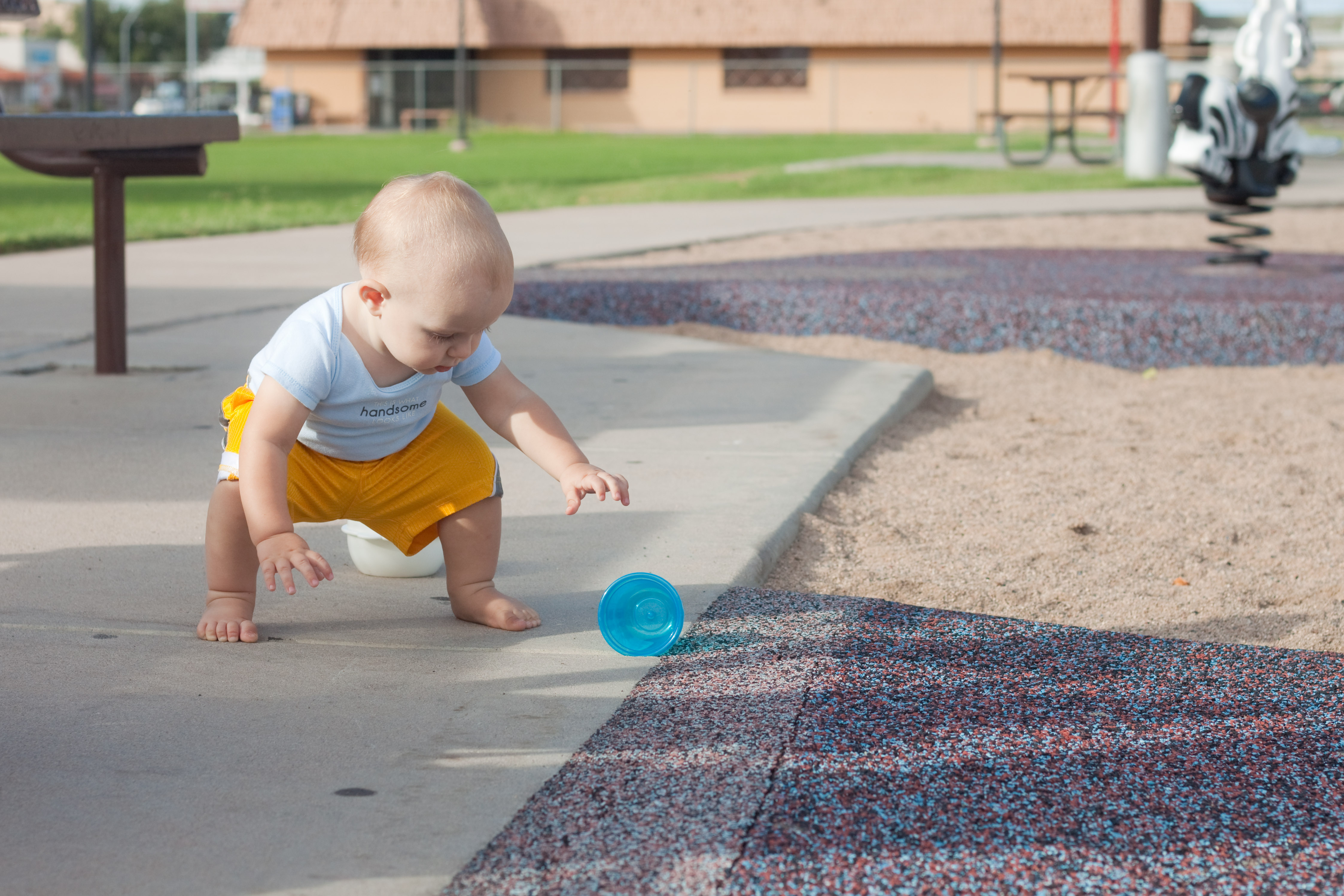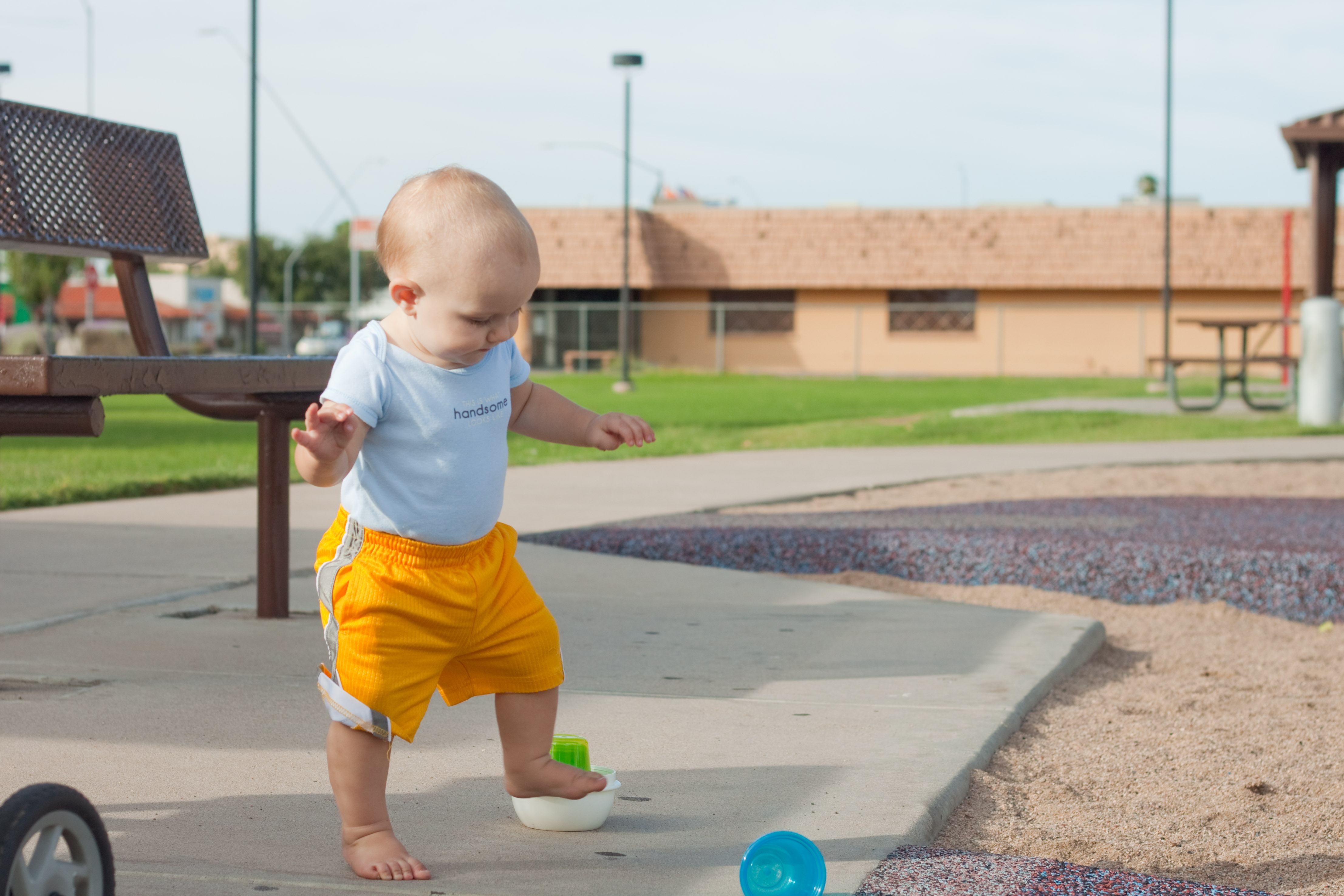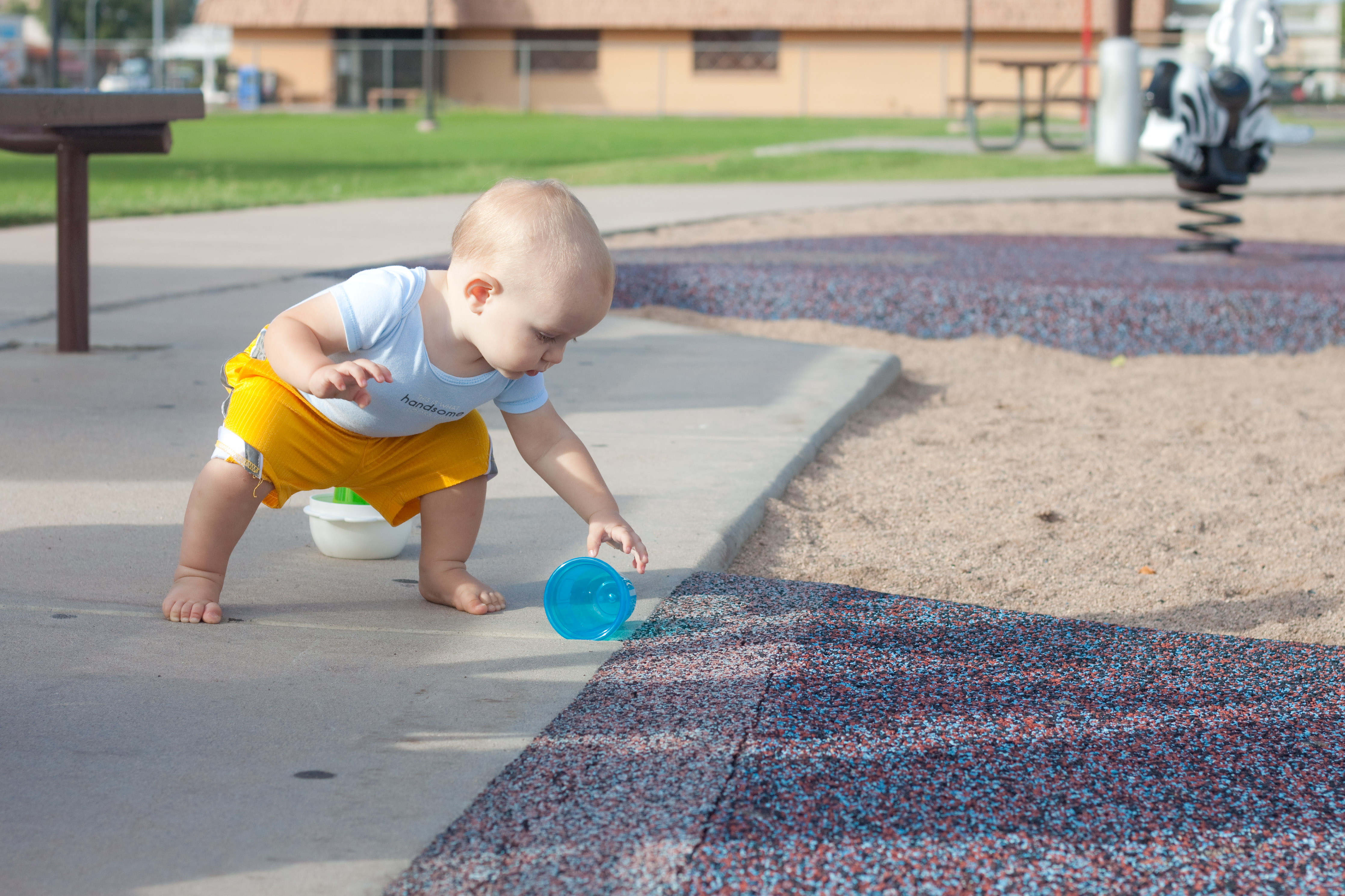 It is quite a privilege to watch a very young child playing independently. I brought stackable cups and a random bowl to the park with us and simply set them on the ground to see if the boys would notice or be interested.