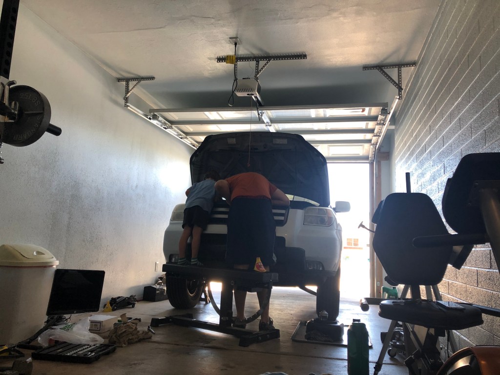 1. He also got to help Paul change the oil in the family car, scooting under the engine block to see the oil cap and filter and looking in from the top to check the oil levels (and help identify a cracked part elsewhere on the engine…). He’s starting to show interest in learning practical skills by doing things together with us, which is just awesome for so many reasons (not least of which is the enjoyment of time spent together making something useful).