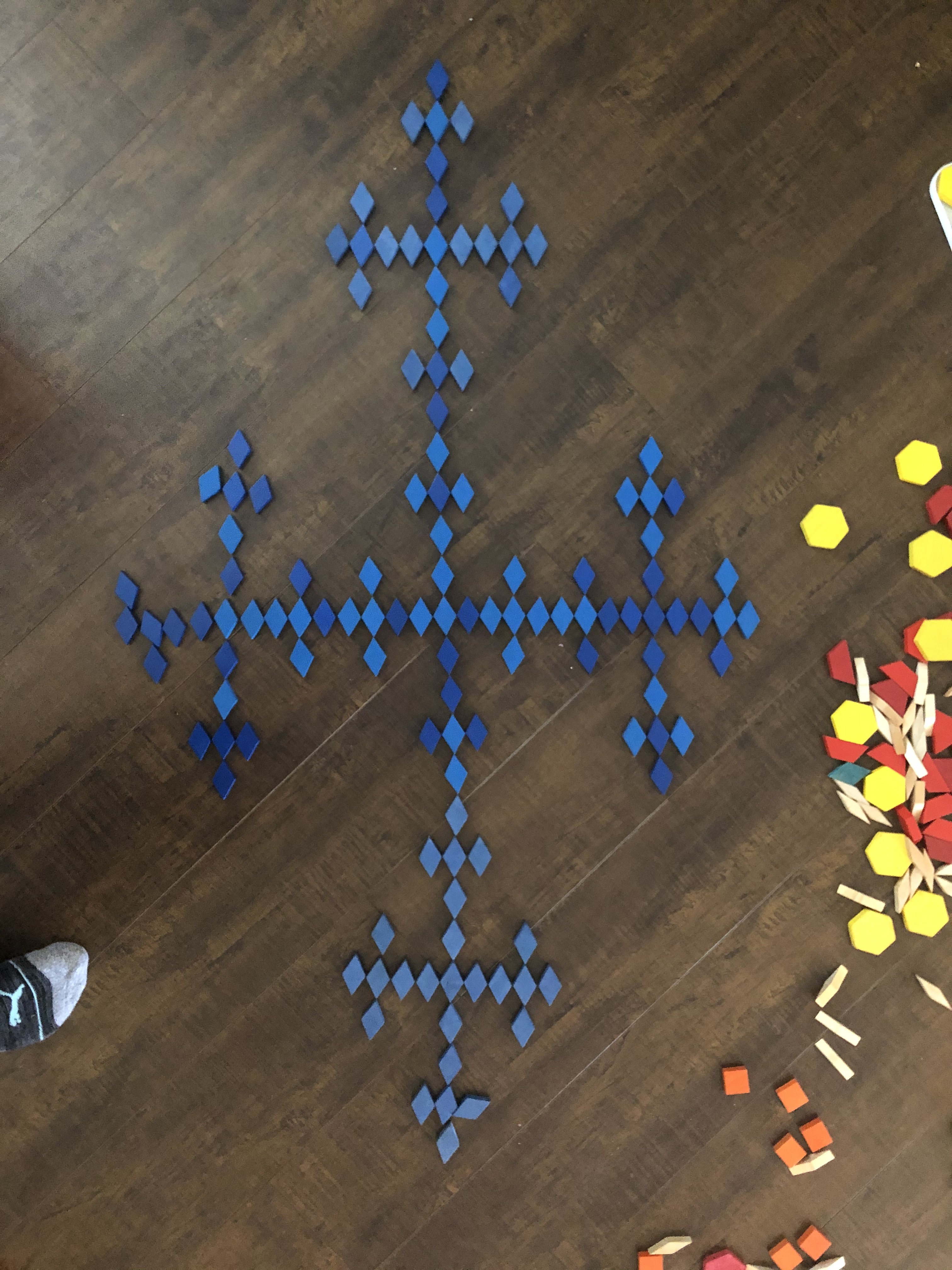 3. Limerick also discovered fractals and tessellation in the past couple weeks, and has been trying to build models of them with all the various pattern/construction toys we have around. And then whenever possible he turns them into rocket launchers, with progressively larger fractal rockets 🙂