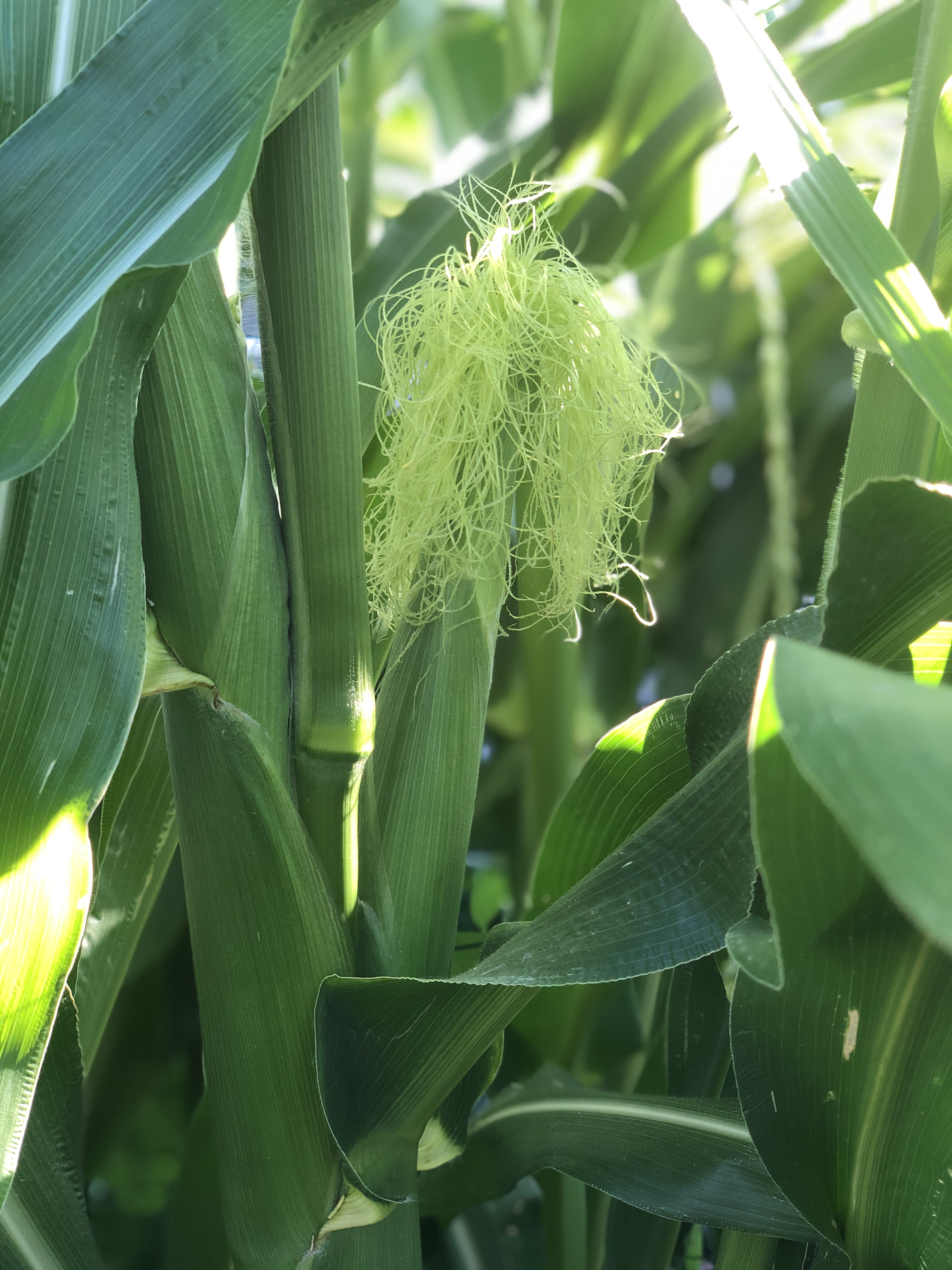 1. Our corn is really taking off! This is my first time growing corn, so while I’ve seen it in fields before I’ve never really paid attention to all the stages of its growth. For instance, I’ve never before seen those tall, willowy flowers that bloom before the ears form, or gotten to watch the ears slowly grow plumper within their husks. They also make a good barrier to hide behind when having water gun battles with the kids…