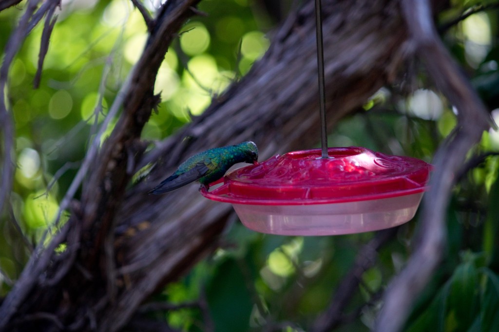 - The Hummingbird Aviary – While we didn’t visit at the optimal time of year for birds, bees, and butterflies, there were still a lot of hummingbirds zipping around the aviary. All the kids loved looking up into the branches to see if they could spot a bird, and Aubade got especially excited when one flew just over her head and landed near her. The aviary has a large informational sign as well for help in identifying the different species of hummingbird, which I appreciated!